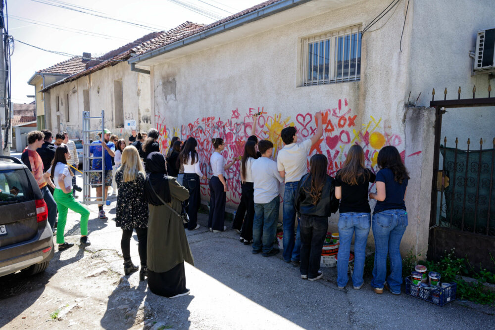 U ovoj uličnoj akciji učestvovali su učenici dviju srednjih škola Goce Delčev i Sami Frasheri koji su zajedno sa Udrugom likovnih umjetnika FORMA oslikavali mural posvećen pomirenju, suživotu i izgradnji mira.