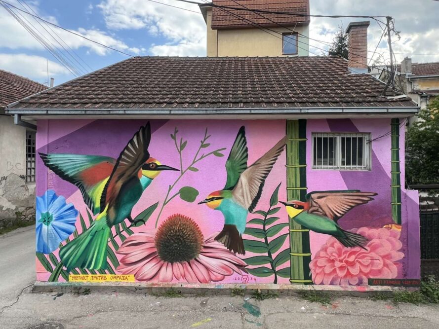 “Umjetnost protiv mržnje” naziv je ulične akcije koja je od 24. do 25.aprila održana u Kumanovu, Sjeverna Makedonija. Organizator je neformalna grupa mirovnih aktivistica okupljena uz podršku Centra za nenasilnu akciju, sa ciljem da javne površine, umjesto poruka netrpeljivosti i nasilja, ispune slike koje promovišu solidarnost, različitost i zajedništvo.
