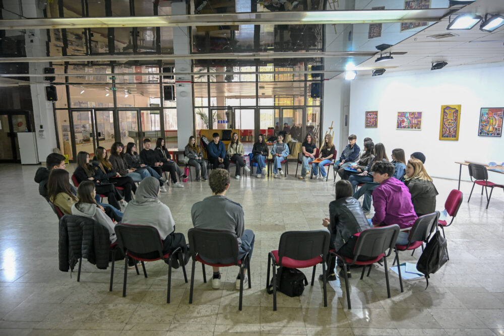 Një ditë para aksionit rrugor, nxënësit e shkollave të mesme Goce Dellçev dhe Sami Frashëri patën mundësinë të takoheshin dhe të shoqëroheshin në një punëtori njëditorë ku trajtuan tema të tilla si: puna në grup dhe komunikimi, gjuha e urrejtjes, mosdhuna dhe veprimet të padhunshme. Nxënësit patën gjithashtu mundësinë të mësonin rreth konceptit të artit të angazhuar rrugor, i cili mund të jetë një instrument i fuqishëm për ndryshime shoqërore.